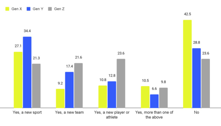 *Aclaración rápida: Gen X (45-60 años), Gen Y/Millenials (30-44 años), Gen Z (18-29 años). El estudio encuestó a 1.050 fans estadounidenses, 350 de cada grupo.